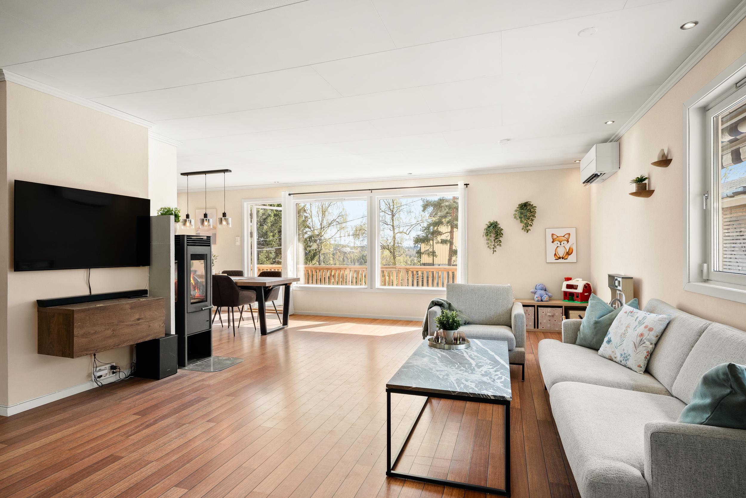 Familievennlig planløsning med bla. alle soverom på samme plan og en åpen planløsning i hovedetasjen med god plass for lek og sosialt samvær.
