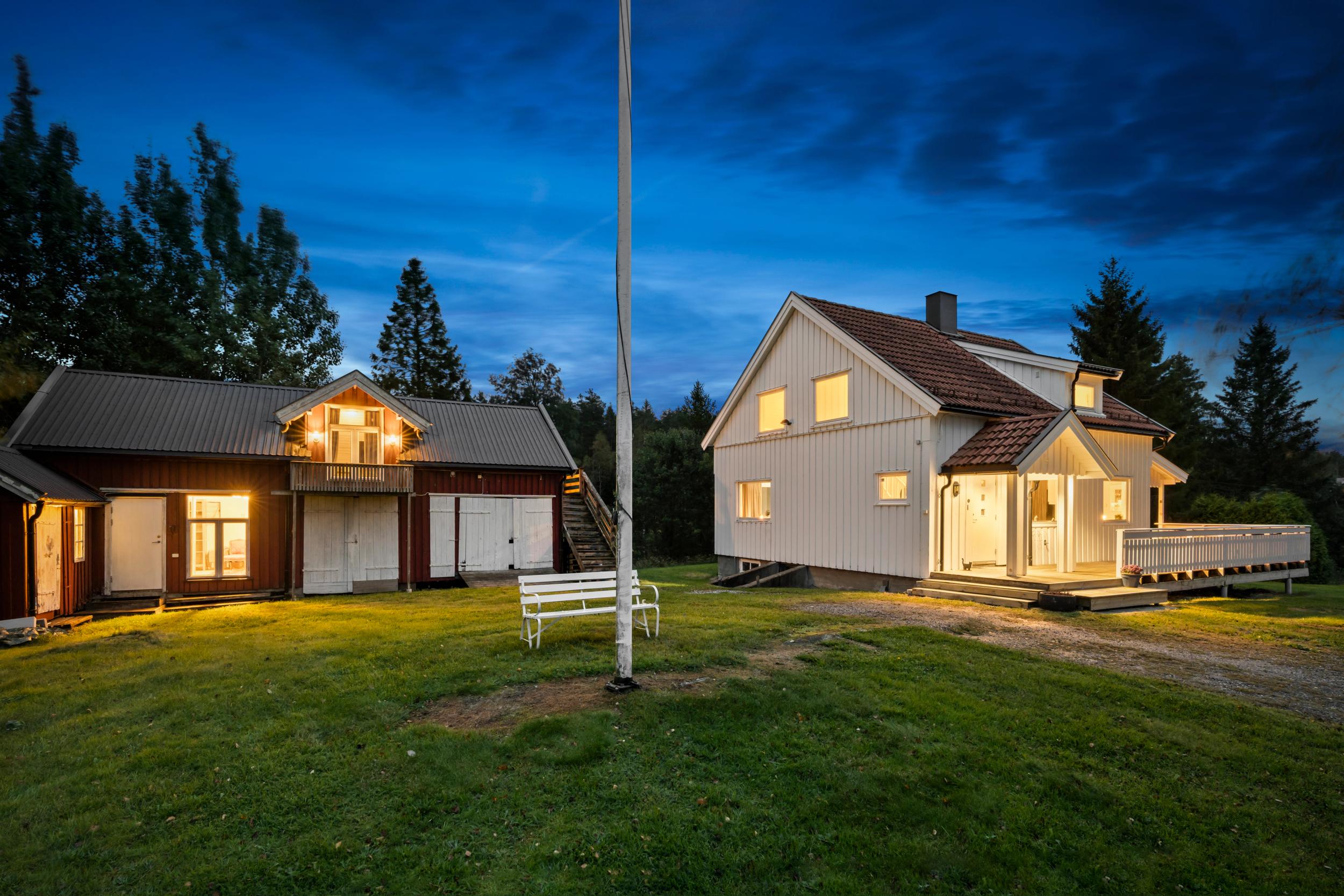 Sjarmerende småbrukpreget eiendom omkranset av kulturlandskapet - oppvarmet garasje på 68 kvm + innredet uthus på 76 kvm