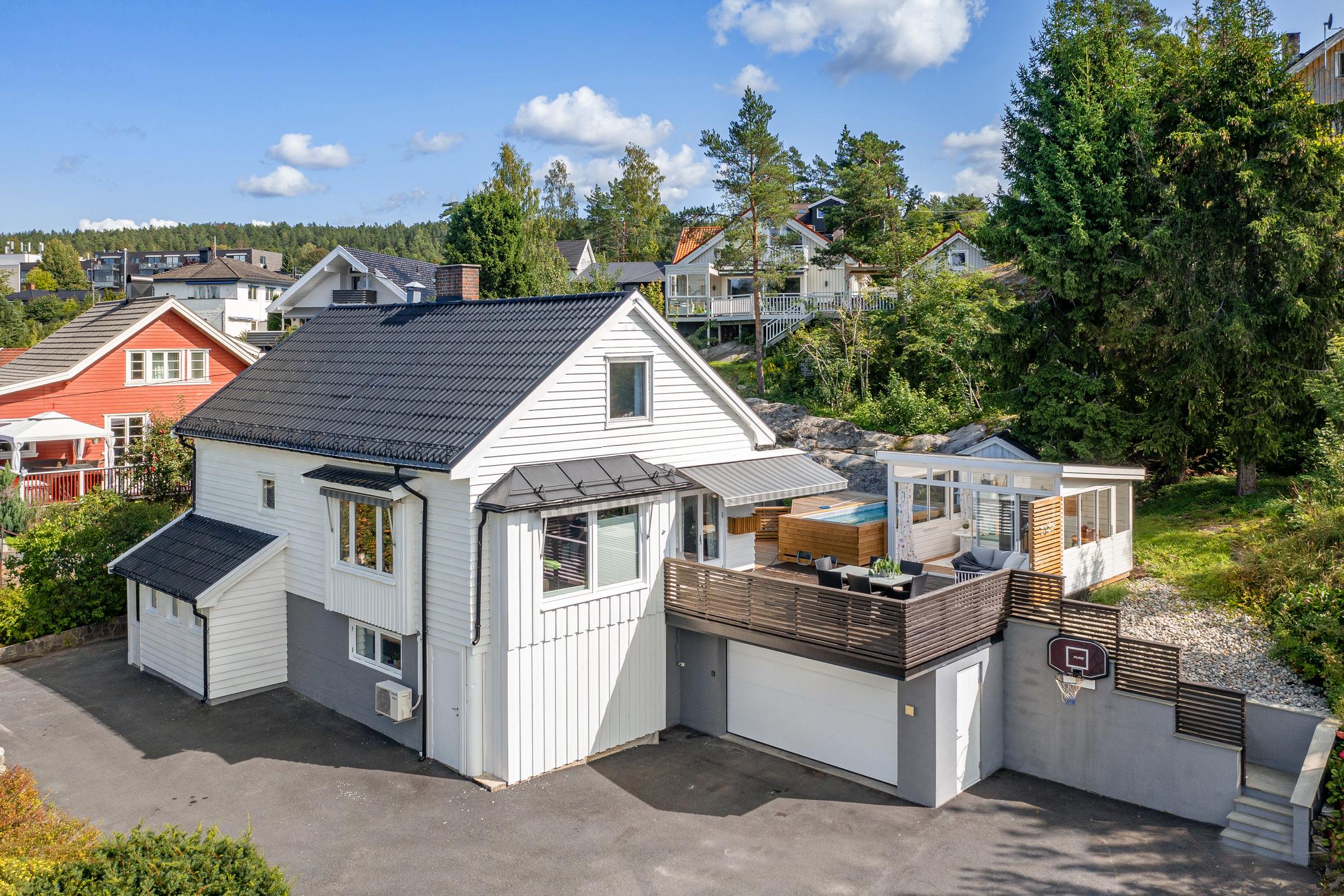 Enebolig med stor solrik tomt og utsikt mot Holmenkollen- ny stor garasje - nytt kjøkken 2022 - nytt baderom 2023